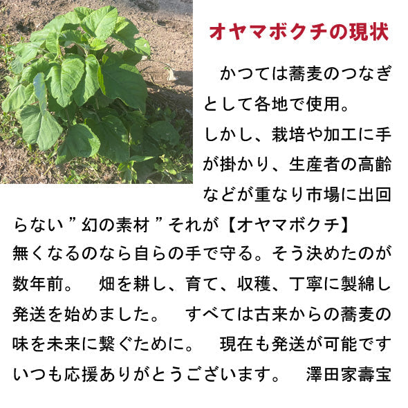 【オヤマボクチ蕎麦 雅】北信州産ヒスイそば粉 オヤマボクチ草(乾燥)打ち粉(蕎麦粉、片栗粉)汁 醤油 味りん 砂糖 鰹節 宗田節 鰯節