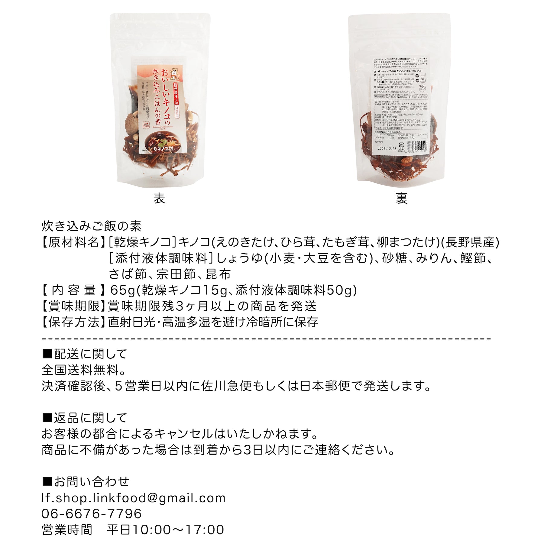 乾燥きのこだから滋味あふれる炊き込みご飯。スーパーではあまり見かけないキノコも😲5種類それぞれ食感も香りも楽しめる炊き込みご飯の素です。信州産丸大豆しょうゆを使用した本格的なだしつゆが、おいしさを引き立てています😋保存料、化学調味料は無添加です。炊飯器にお米とお水と炊き込みご飯の素を入れて、吸水させてから炊くだけ!手軽にキノコのうまみたっぷりの炊き込みご飯をお楽しみください💝