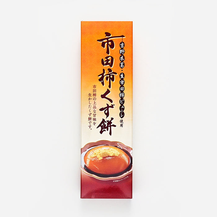 吉野本葛 生市田柿ピューレ使用、市田柿の上品な甘味を生かしたくず餅です。