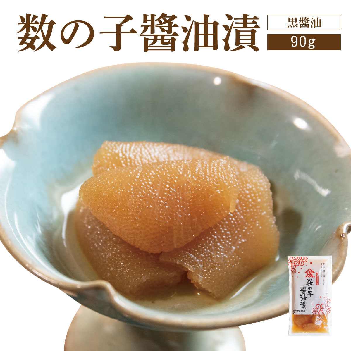 数の子(オランダ)、しょうゆ、還元水飴、こんぶエキス、カニエキス、かつお節調味エキス、みりん、食塩/ソルビット、調味料(アミノ酸等)、酒精、酸味料、リン酸塩(Na)、(一部に小麦・かに・大豆・ゼラチンを含む)