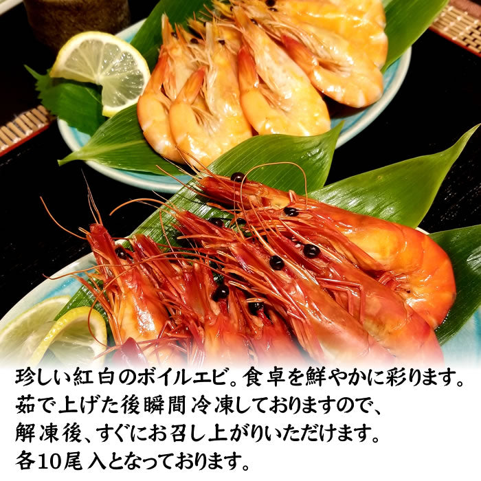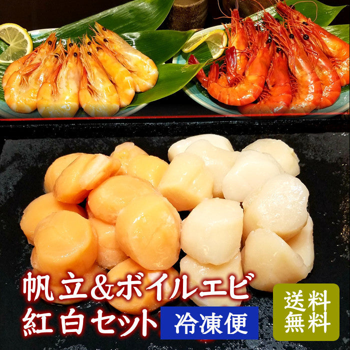 ほたて:各250g(10~15玉前後・時季により変動がございます。ご了承ください) ボイルエビ:各10尾