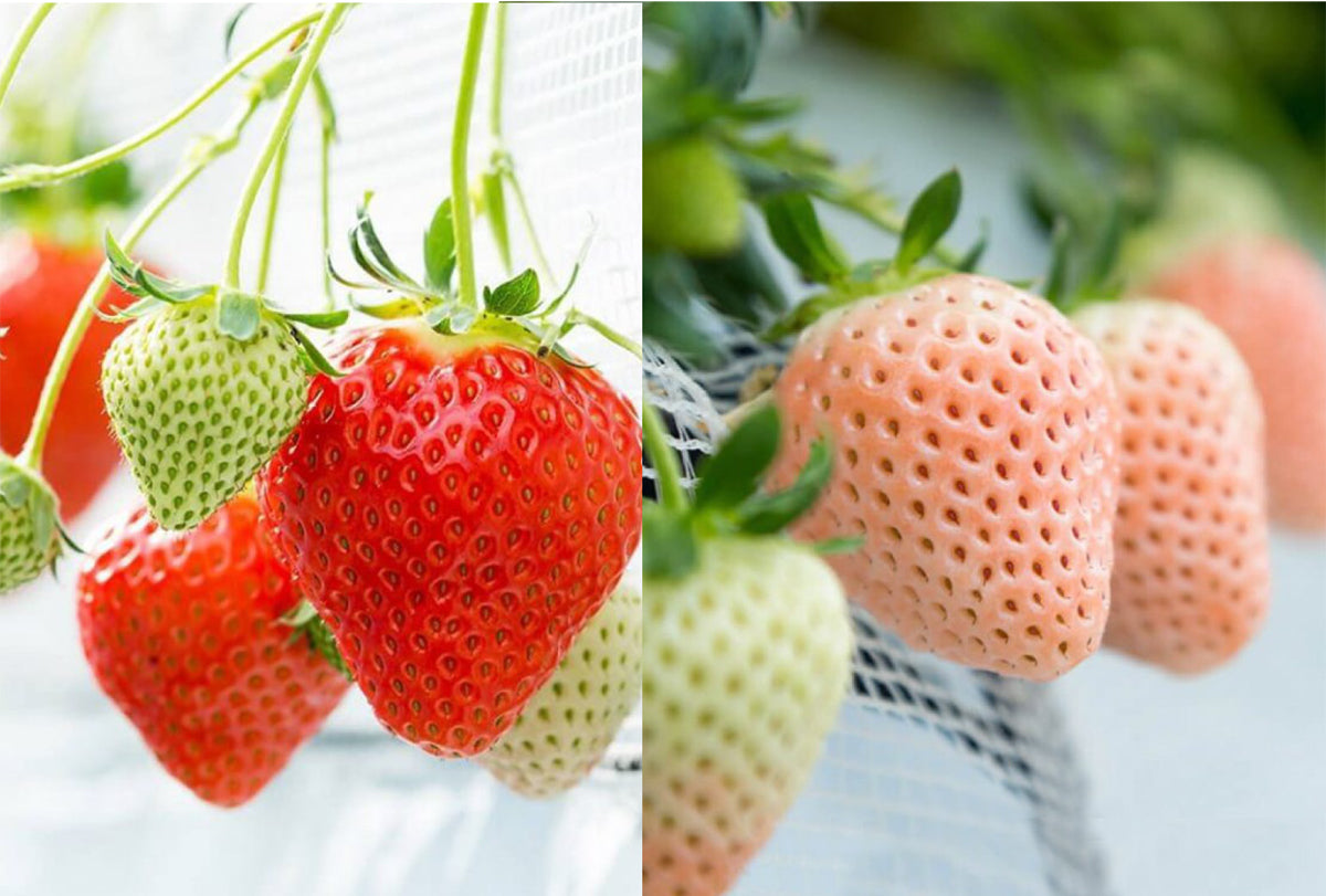 赤いイチゴと白いイチゴ、華やかな赤白のいちごを味わえるセット。
