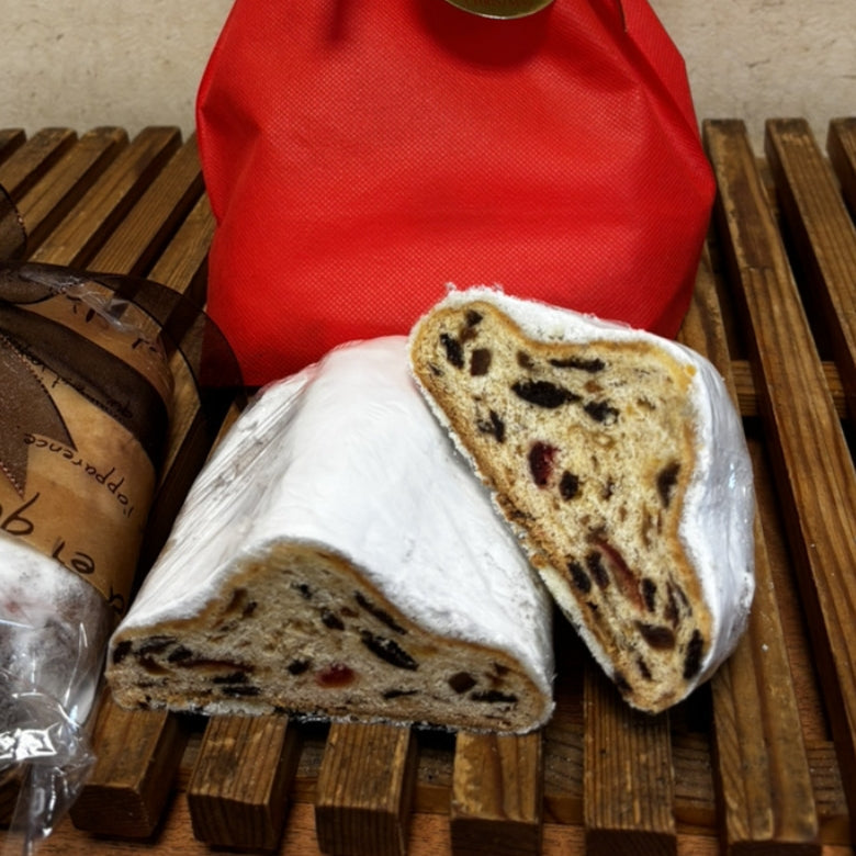マジパンとミックスフルーツをたっぷり使った創業以来人気のシュトーレン。昨年は2000個販売いたしました!