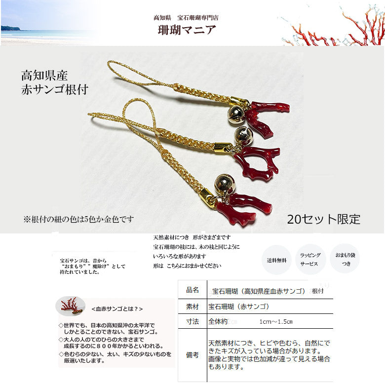 プレゼントに最適 人気!血赤サンゴの枝の根付 5色の根付紐
