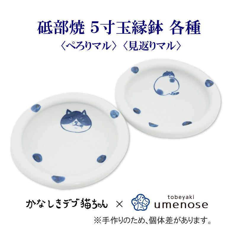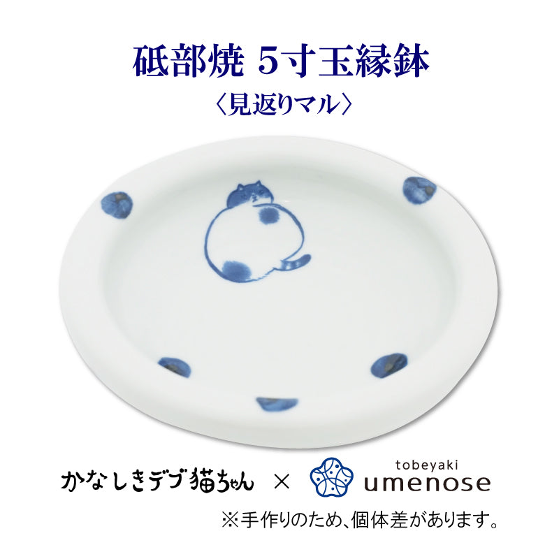かなしきデブ猫ちゃん 砥部焼 5寸玉縁鉢 <ぺろりマル> <見返りマル>