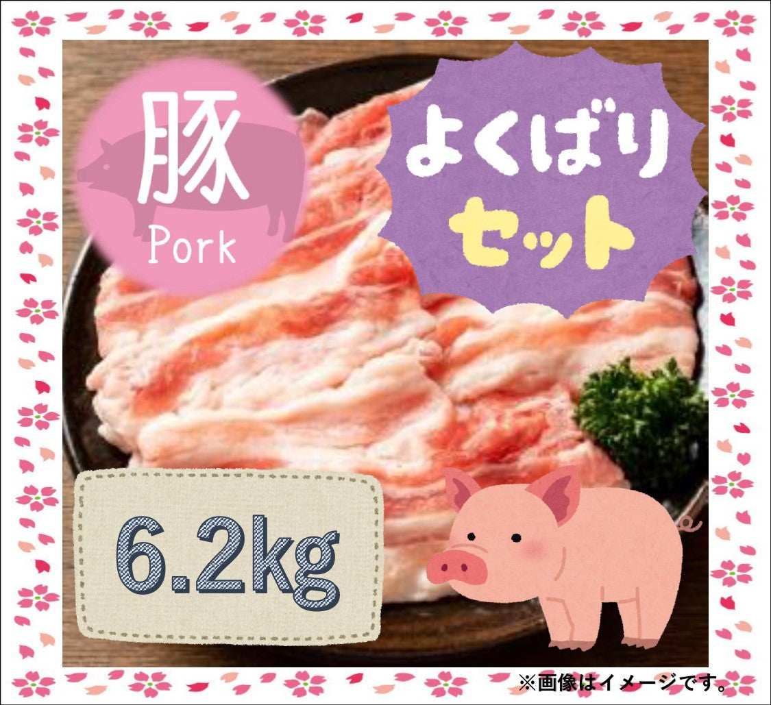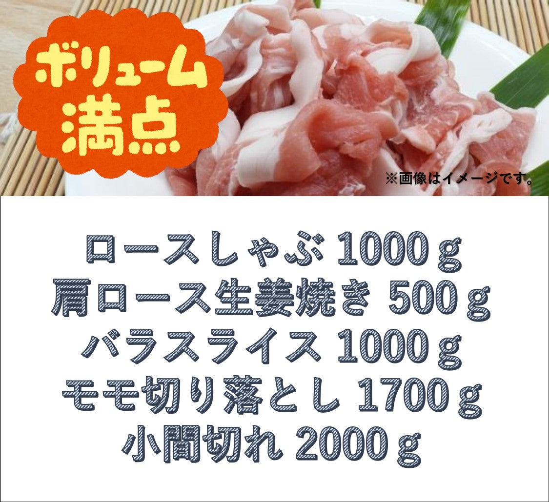 6200g(ロースしゃぶ1000g 肩ロース生姜焼き500g バラスライス1000g モモ切り落とし1700g 小間切れ2000g)