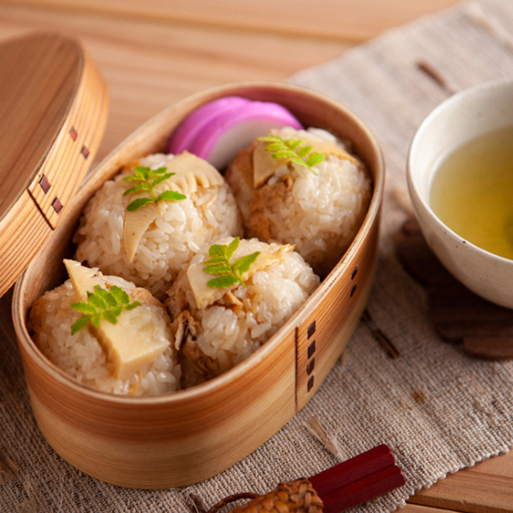 原材料:加工米(もち米(国産))、竹の子入だし汁(たけのこ(国産)、かつお節だし、油揚げ(国産)、醸造調味料、しょうゆ、食塩)、(一部に小麦・大豆を含む)