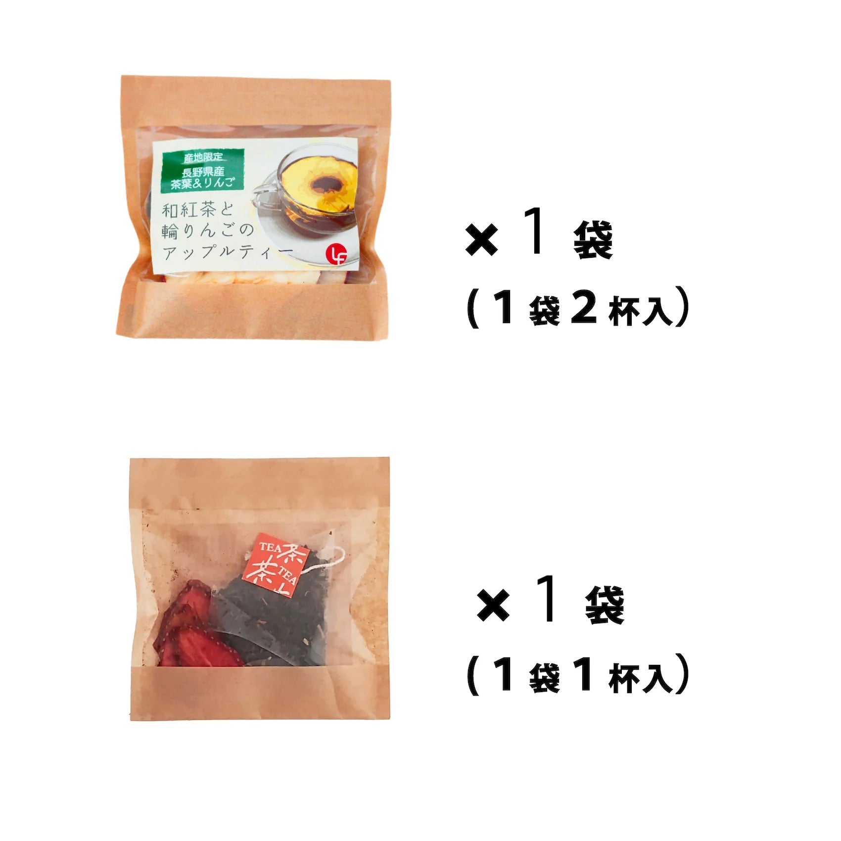 輪りんごと和紅茶のアップルティー/乾燥りんご(りんご(長野県産)) , 紅茶(長野県産) 和紅茶といちごのフルーツティー/乾燥いちご(いちご(長野県産)),紅茶(長野県産)