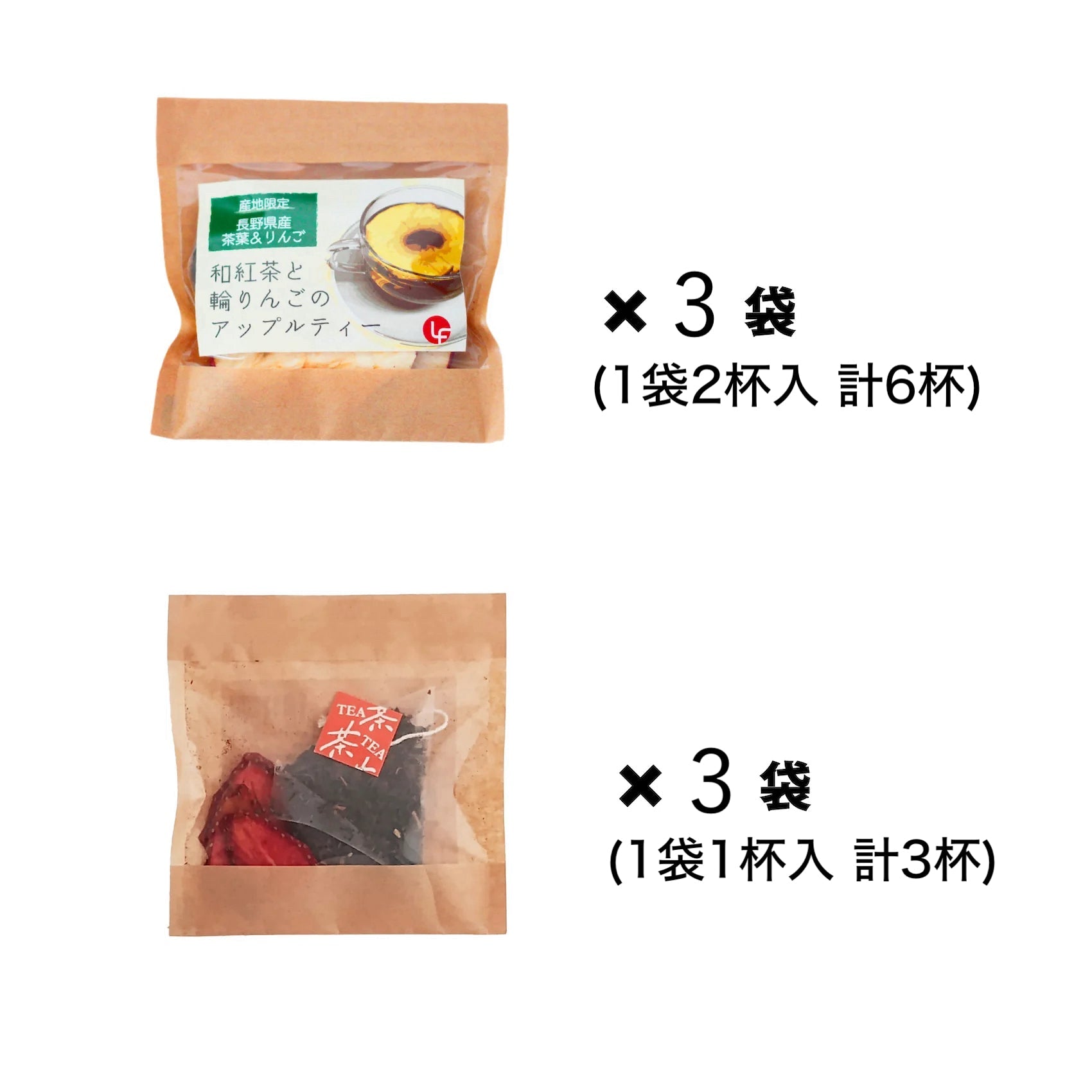 輪りんごと和紅茶のアップルティー/乾燥りんご(りんご(長野県産)) , 紅茶(長野県産) 和紅茶といちごのフルーツティー/乾燥いちご(いちご(長野県産)),紅茶(長野県産)