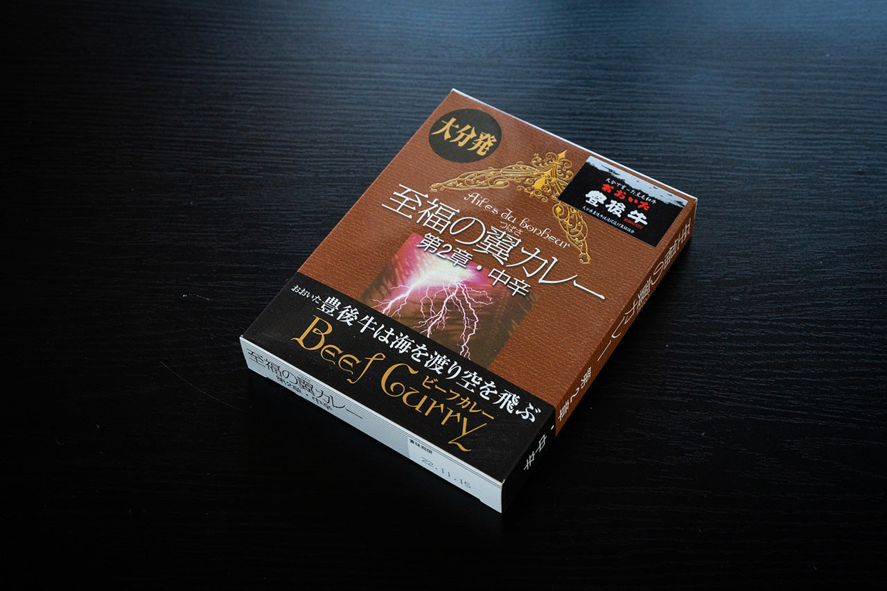 牛肉(大分県産)、ソテーオニオン、カレールウ、カレーペースト(ソテーオニオン、砂糖、水飴、トマトピューレー、カレー粉、にんにくペースト、しょうがペースト、香辛料)、濃厚ソース、ソフリット(たまねぎ、にんじん、セロリ、大豆油)、ビーフエキス、小麦粉、たん白加水分解物、バター、香辛料、にんにくペースト、食塩/増粘剤(加工デンプン、グァーガム)、調味料(アミノ酸等)、カラメル色素、乳化剤、酸味料、香料、(一部に小麦・乳成分・牛肉・豚肉・ごま・大豆・りんごを含む)