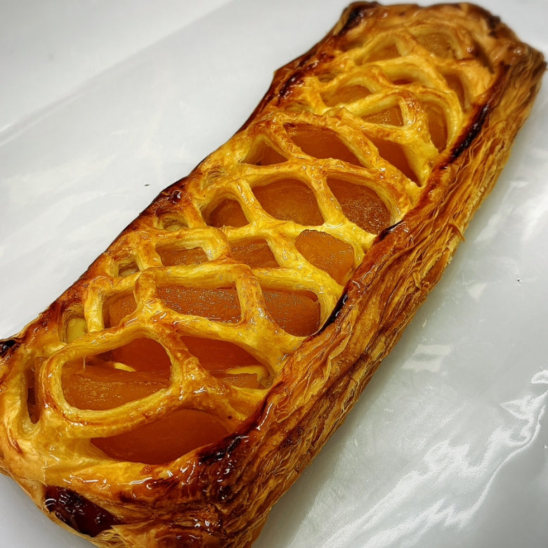 小麦粉、砂糖、ホイップクリームのみで作った本格派のパイ生地にクリーミーなカスタードクリームと国産りんごをゴロゴロ使用しました。お店で人気の商品がついに通販でも買えちゃいます。大きさは約30センチ、お好みの厚さにスライスしてお召し上がりください。解凍後、トーストするとサクサク感がアップ❗️