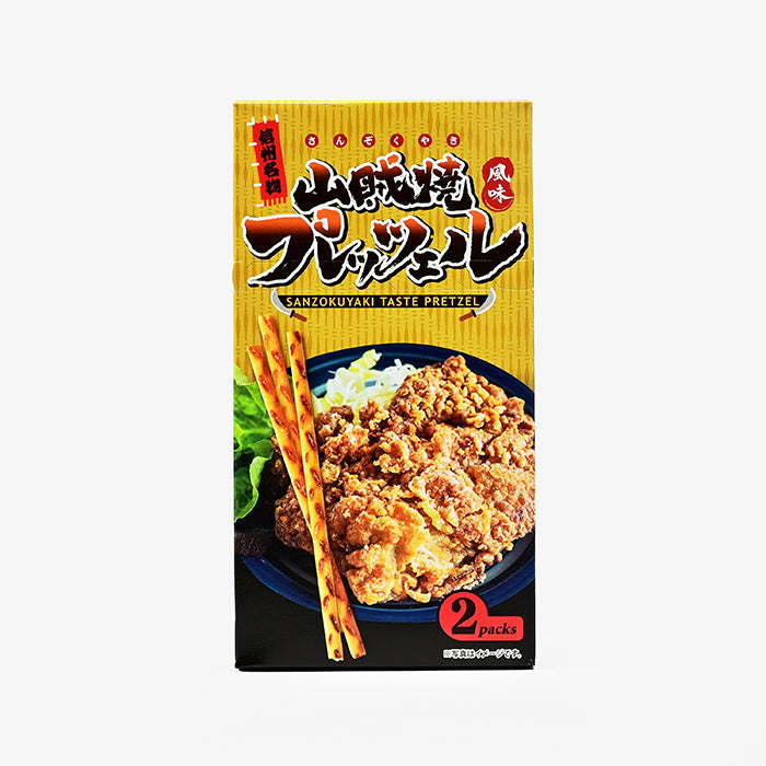 塩尻で生まれ松本で育った名物料理の山賊焼き風味のプレッツェルです