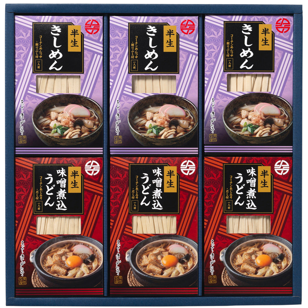 843g ( きしめん ( 半生きしめん 100g、めんつゆ 25g、 かつおかれぶし削りぶし 1g )×3、味噌煮込うどん ( 半生うどん 100g、あじみそ 50g、かつおだし 5g )×3 )