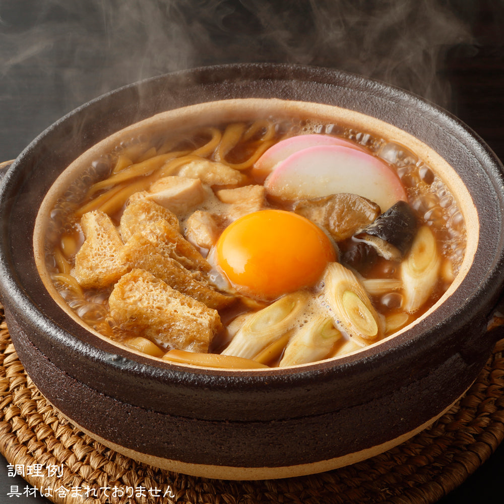 【きしめん】めん〔小麦粉(国内製造)、食塩/加工でん粉、(一部に小麦を含む)〕、めんつゆ〔しょうゆ、砂糖、食塩、チキンエキス、煮干しエキス、かつおぶしエキス、昆布エキス/調味料(アミノ酸等)、カラメル色素、(一部に小麦・大豆・さば・鶏肉を含む)〕、かつおかれぶし削りぶし〔かつおのかれぶし〕【味噌煮込うどん】めん〔小麦粉(国内製造)、食塩/加工でん粉、(一部に小麦を含む)〕、あじみそ〔みそ、しょうゆ、砂糖、煮干しエキス、チキンエキス、チキンオイル、かつおぶし粉末/調味料(アミノ酸等)、カラメル色素、(一部に小麦・大豆・鶏肉・ごま・ゼラチンを含む)〕、かつおだし〔食塩、砂糖、かつお節粉末、かつおエキス粉末/調味料(アミノ酸等)、(一部にさばを含む)〕