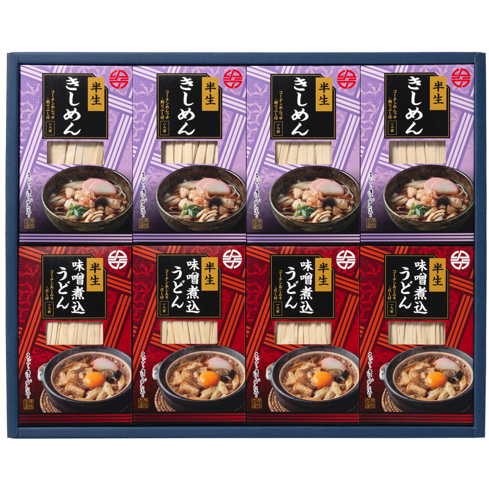 1124g ( きしめん ( 半生きしめん 100g、めんつゆ 25g、 かつおかれぶし削りぶし 1g )×4、味噌煮込うどん ( 半生うどん 100g、あじみそ 50g、かつおだし 5g )×4 )