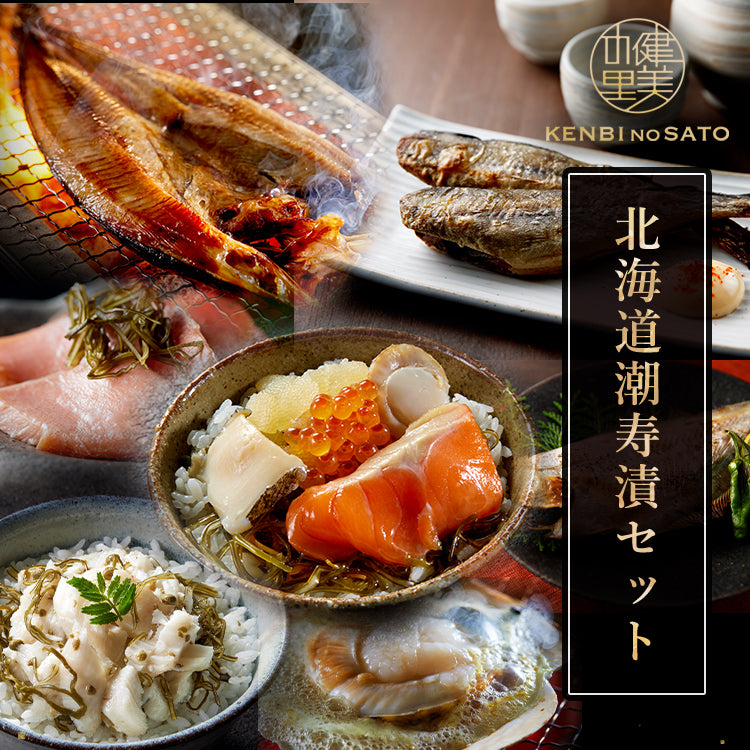 真ほっけ【羅臼産】×1、こまい【北海道産】3尾入×1宗八かれい【北海道産】×1、ほたて片貝【北海道産】2枚入×1、潮寿漬50g×1、昆布〆塩蔵新巻鮭50g×1、昆布〆鱈山椒50g×1