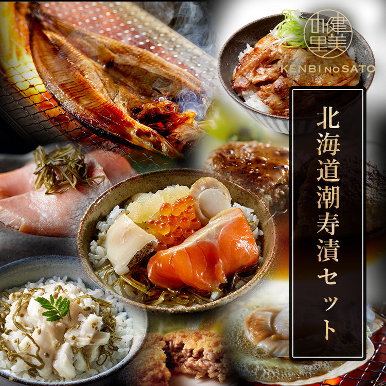 真ほっけ【羅臼産】×1、ほたて片貝【北海道産】2枚入×1、ハンバーグ【北海道産牛100%】150g×1、ハンバーグソース30g×1、豚丼の具【国産】130g×1、豚丼のたれ30g×1、牛肉と熟成ベーコンのメンチカツ×1、潮寿漬50g×1、昆布〆塩蔵新巻鮭50g×1、昆布〆真鱈山椒50g×1