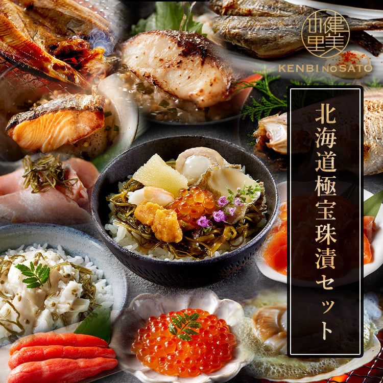 真ほっけ【羅臼産】×1、こまい【北海道産】3尾入×1、宗八かれい【北海道産】×1、ほたて片貝【北海道産】2枚入×1、紅鮭【南千島産】80g×1、新巻鮭【北海道産】80g×1、銀だら西京漬【アメリカ産】80g×1、銀だら柚庵漬【アメリカ産】80g×1、極宝珠漬50g×1、完熟たらこ60g×1、いくら極油漬50g×1、トラウトサーモンルイベ漬50g×1、昆布〆塩蔵新巻鮭50g×1、昆布〆真鱈山椒50g×1