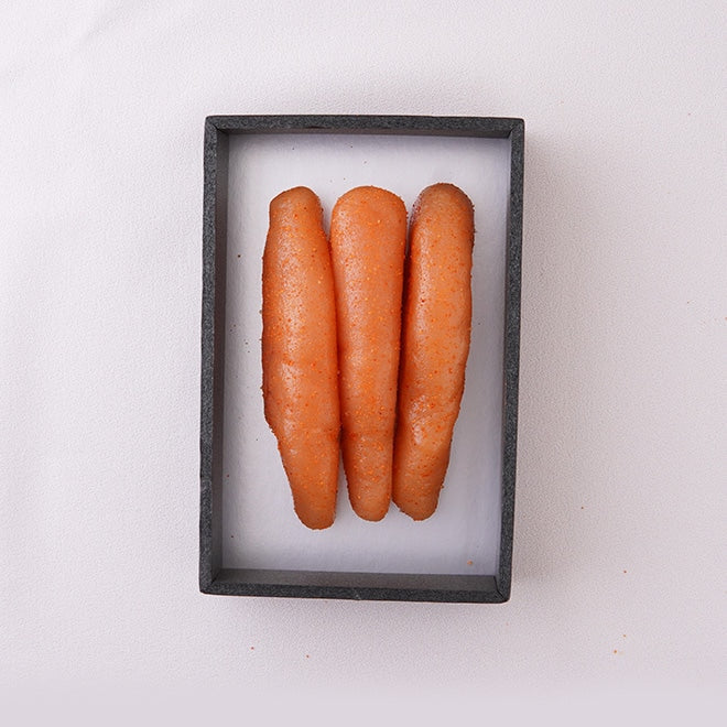 すけとうだらの卵巣(米国産)、純米酒、酒みりん、醤油、鰹節、昆布、食塩、唐辛子 調味料(アミノ酸等)、酸化防止剤(V.C)、pH調整剤、トレハロース、ナイアシン、甘味料(甘草、ステビア)、発色剤(亜硝酸Na) (一部に大豆・小麦を含む)