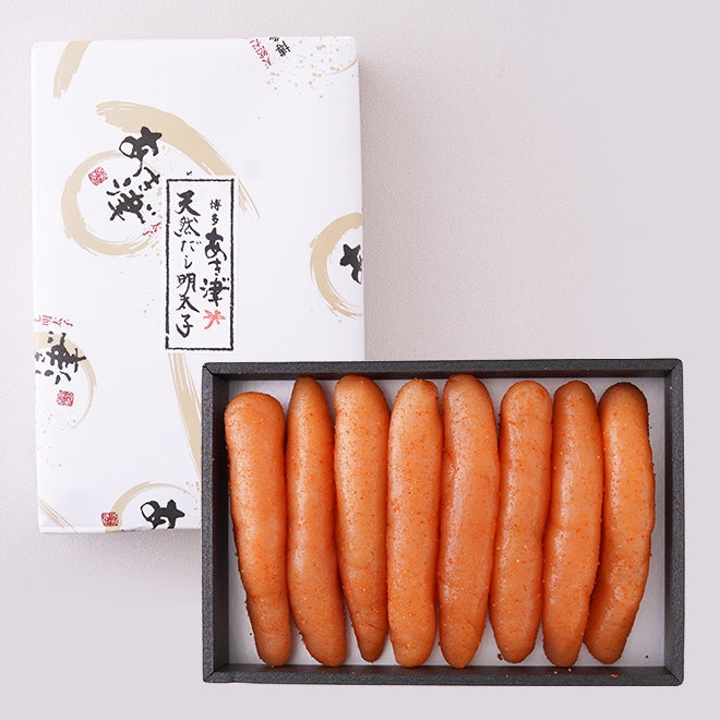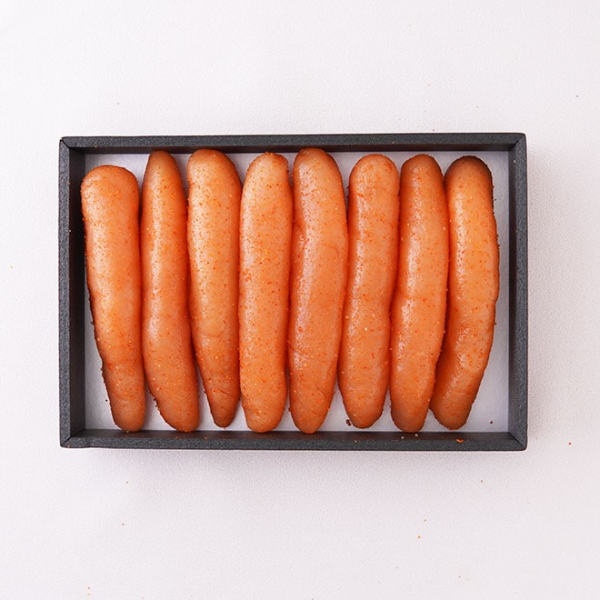 すけとうだらの卵巣(米国産)、純米酒、酒みりん、醤油、鰹節、昆布、食塩、唐辛子 調味料(アミノ酸等)、酸化防止剤(V.C)、pH調整剤、トレハロース、ナイアシン、甘味料(甘草、ステビア)、発色剤(亜硝酸Na) (一部に大豆・小麦を含む)