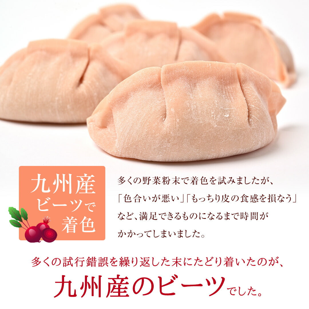[えびしそ餃子]【餡】 【餃子】 野菜(キャベツ(国産)、玉 ねぎ(国産)、しそ)、えび(インド産)、豚肉、 でん粉、食塩、砂糖、ごま油、むきえびパウダー、皮(小麦粉、食用大豆油、澱粉、ビーツ パウダー)/調味料(アミノ酸)【たれ】醤油( 小麦を含む)、植物性蛋白加水分解物(大豆を含む)、醸造酢、砂糖混合異性化液糖、黒蜜、酵母エキス【ラード】豚腹脂