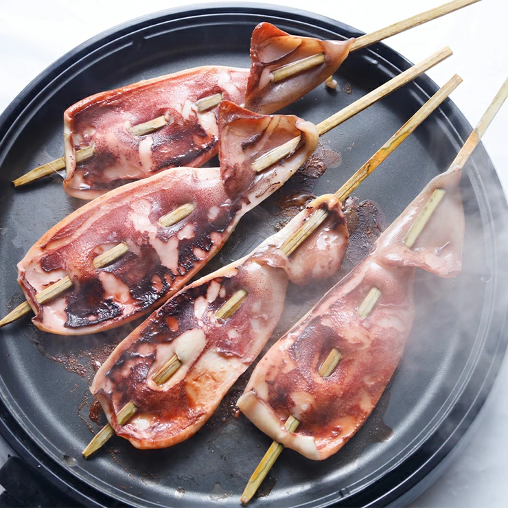 串付きイカ焼きは見た目の迫力があり、SNS映え抜群。写真や動画を撮る来場者が増えるほど、列が伸び、売上アップにつながります。