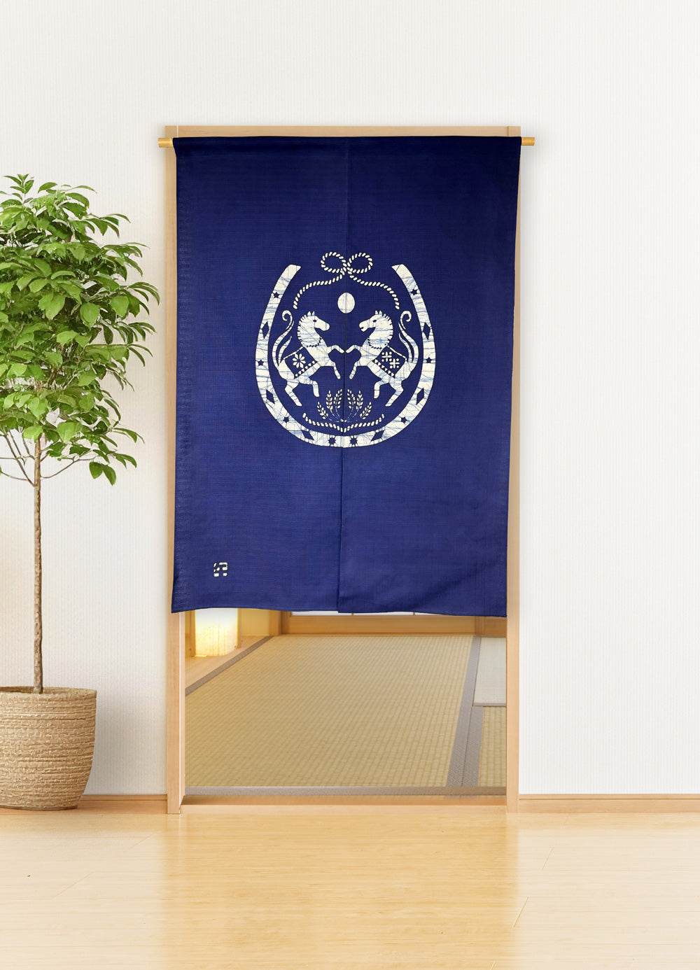 すっきりしたデザインの本ろうけつ染め 干支のれん紺色 迎春用 縁起の良いのれん 商売繁盛!!健康祈願!!