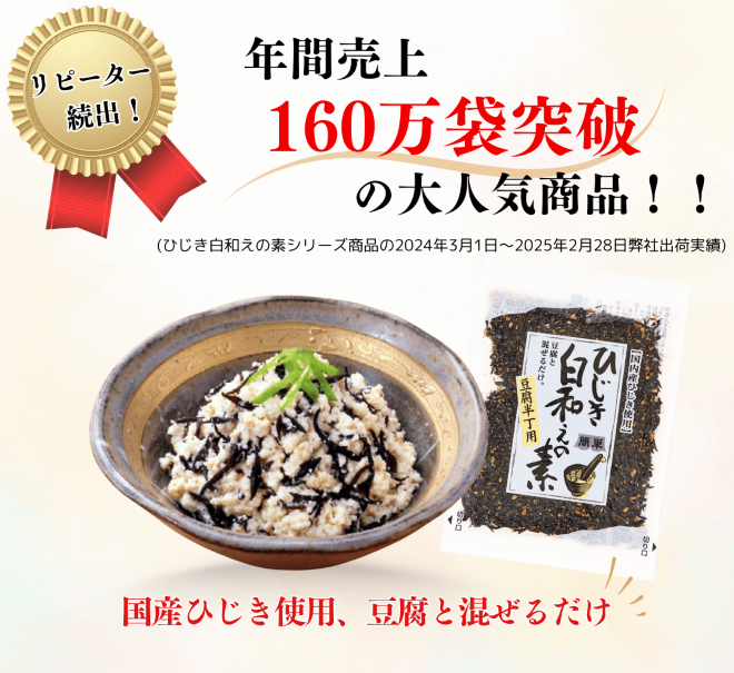 ひじき、果糖ぶどう糖液糖、ごま、食塩、かつお節エキス、醤油(大豆・小麦を含む)、魚醤、酵母エキス